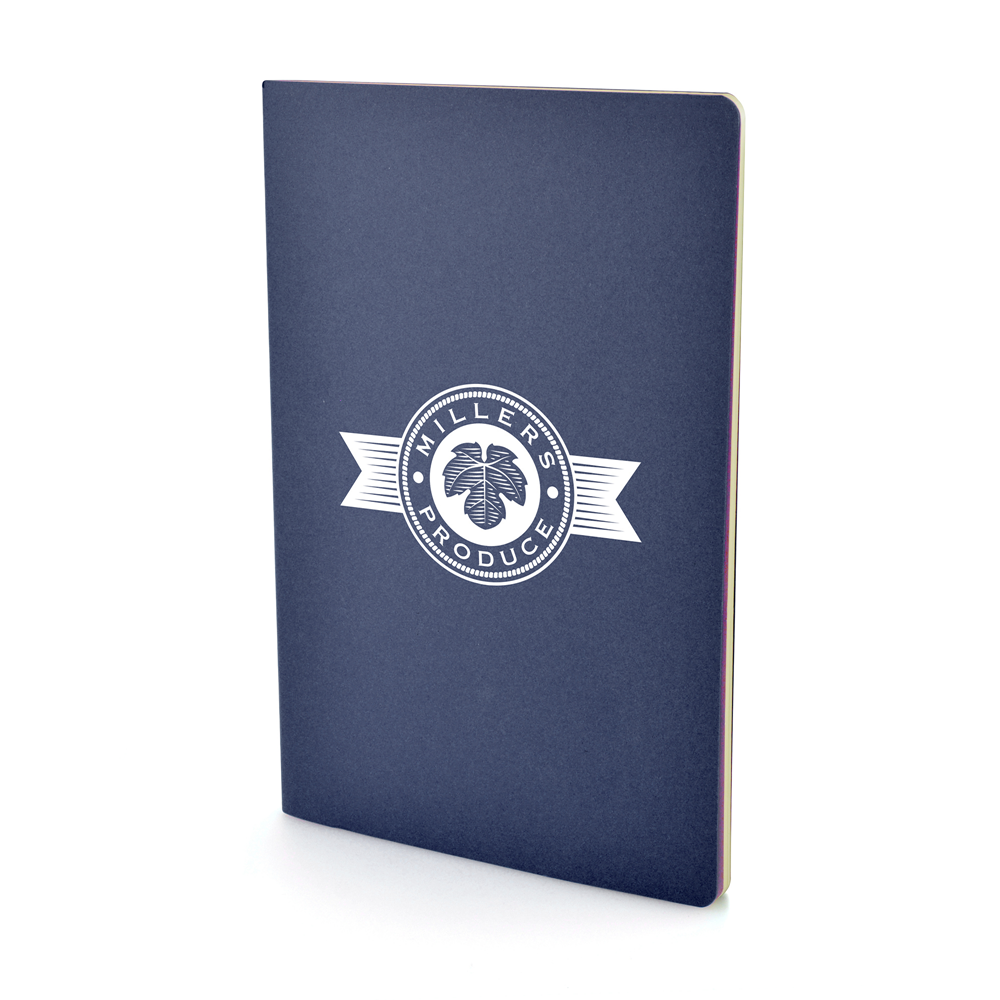A5 recycled cardboard cover notebook with 40 recycled lined cream sheets. Available in black and natural.