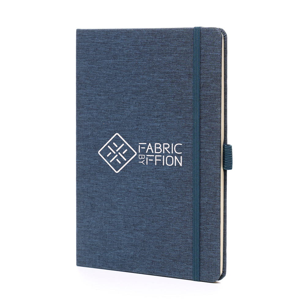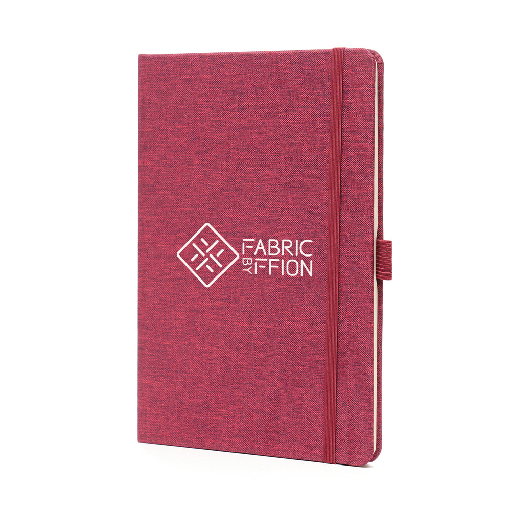 A5 RPET notebook features 80 sheets of recycled lined paper with a pre-printed recycled message, making it versatile for tasks like note-taking, journaling, brainstorming, and sketching. The included bookmark ribbon aids in easily revisiting important notes, while the pen loop and elastic closure add practicality and functionality by keeping the pages secure. With ample space for customisation and branding, it serves as a unique and thoughtful gift that can be the perfect giveaway at trade shows and events or a great onboarding gift. Available in a range of colours to match your branding. Hurry and order yours today!