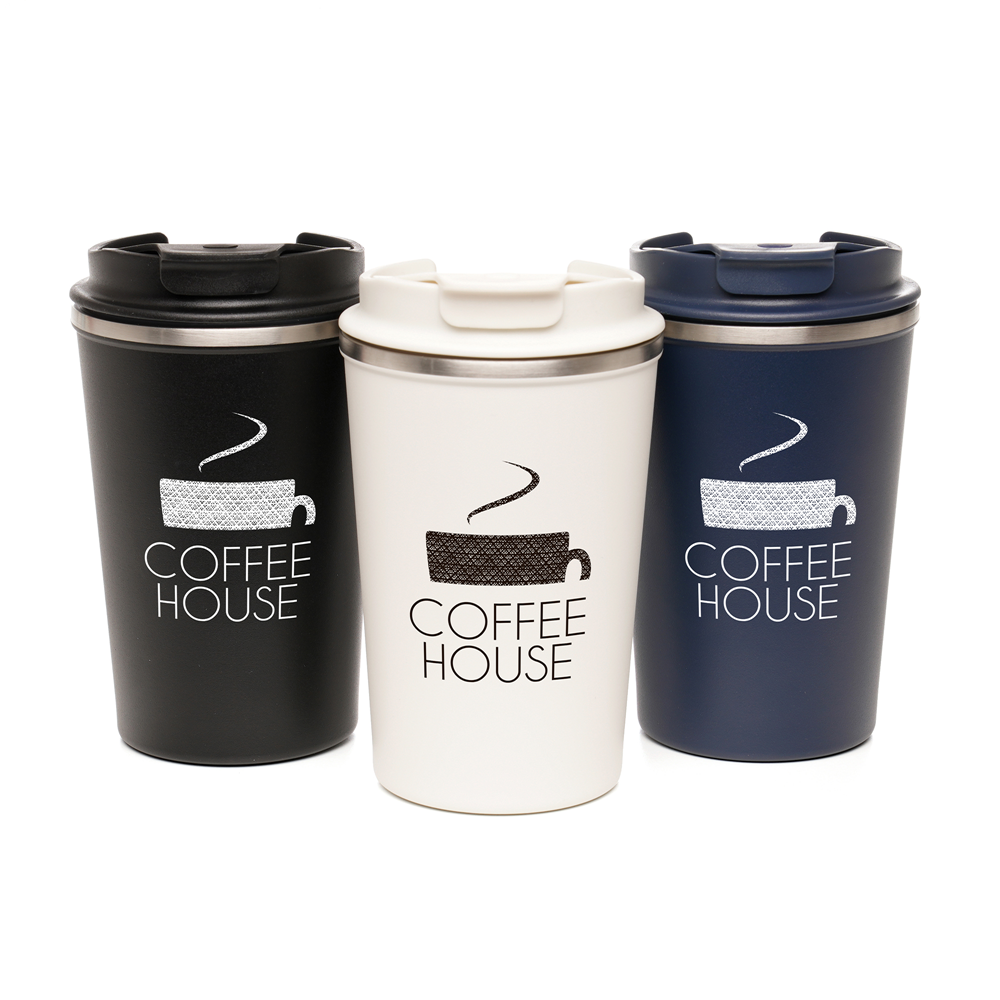 This sleek and premium 350ml tumbler is the perfect promotional merchandise for branding and giveaways. Crafted from recycled stainless steel with copper insulation and ceramic coated inner, it keeps drinks at the ideal temperature for longer. The secure lid features a flip-open sipper with a silicone ring to prevent leaks and spills, making it convenient for on-the-go use. BPA and PVC-free, this high-quality tumbler offers a large branding area, ideal for displaying company logos and messaging. Perfect for corporate gifts or as a giveaway at tradeshows and exhibitions, it?s a stylish and practical choice for boosting brand visibility. Available in a variety of colours. Order your branded tumblers today!