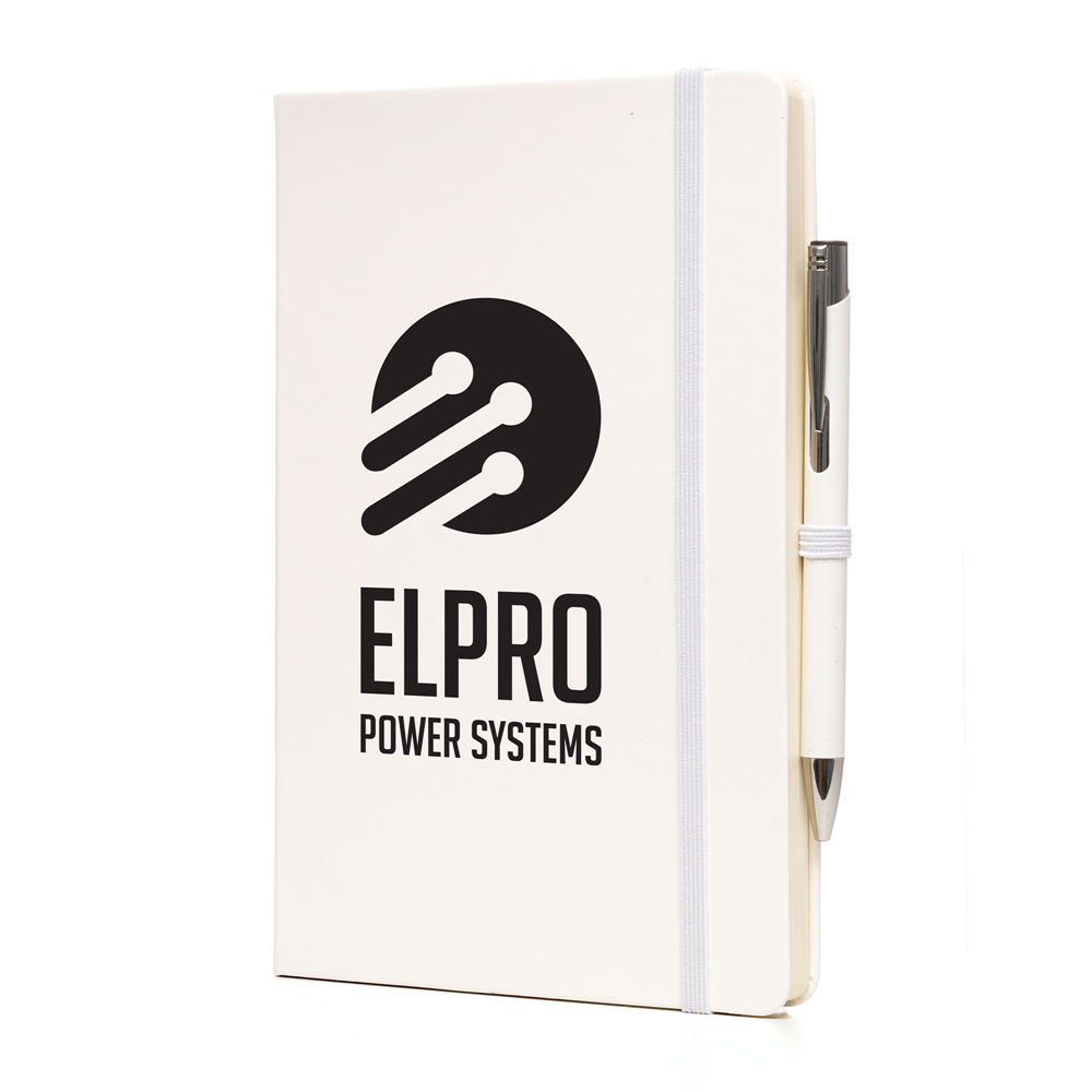 Price includes a one colour print to the note book and engraving to one position on the pen. Individual name available at additional cost. Set up, carriage and VAT are additional.