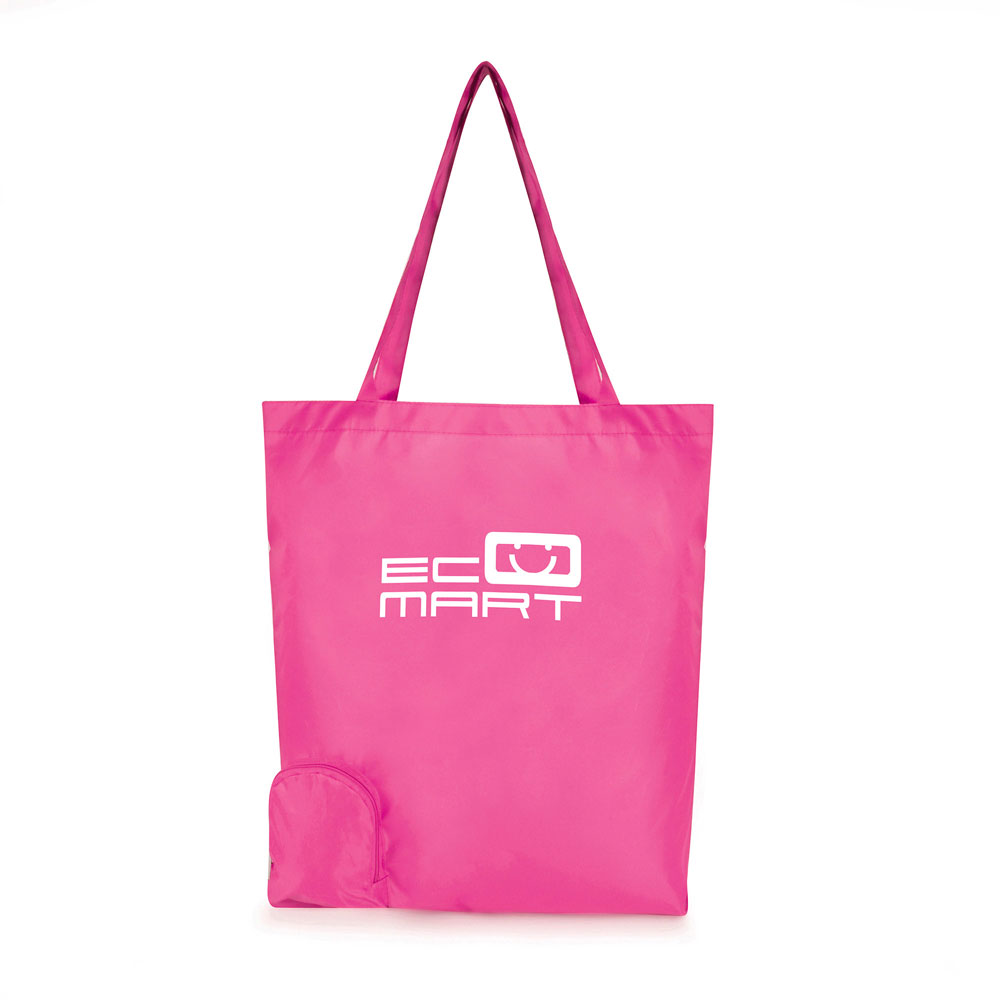 210d polyester shopper bag which conveniently folds into the side pouch with a zip closure.